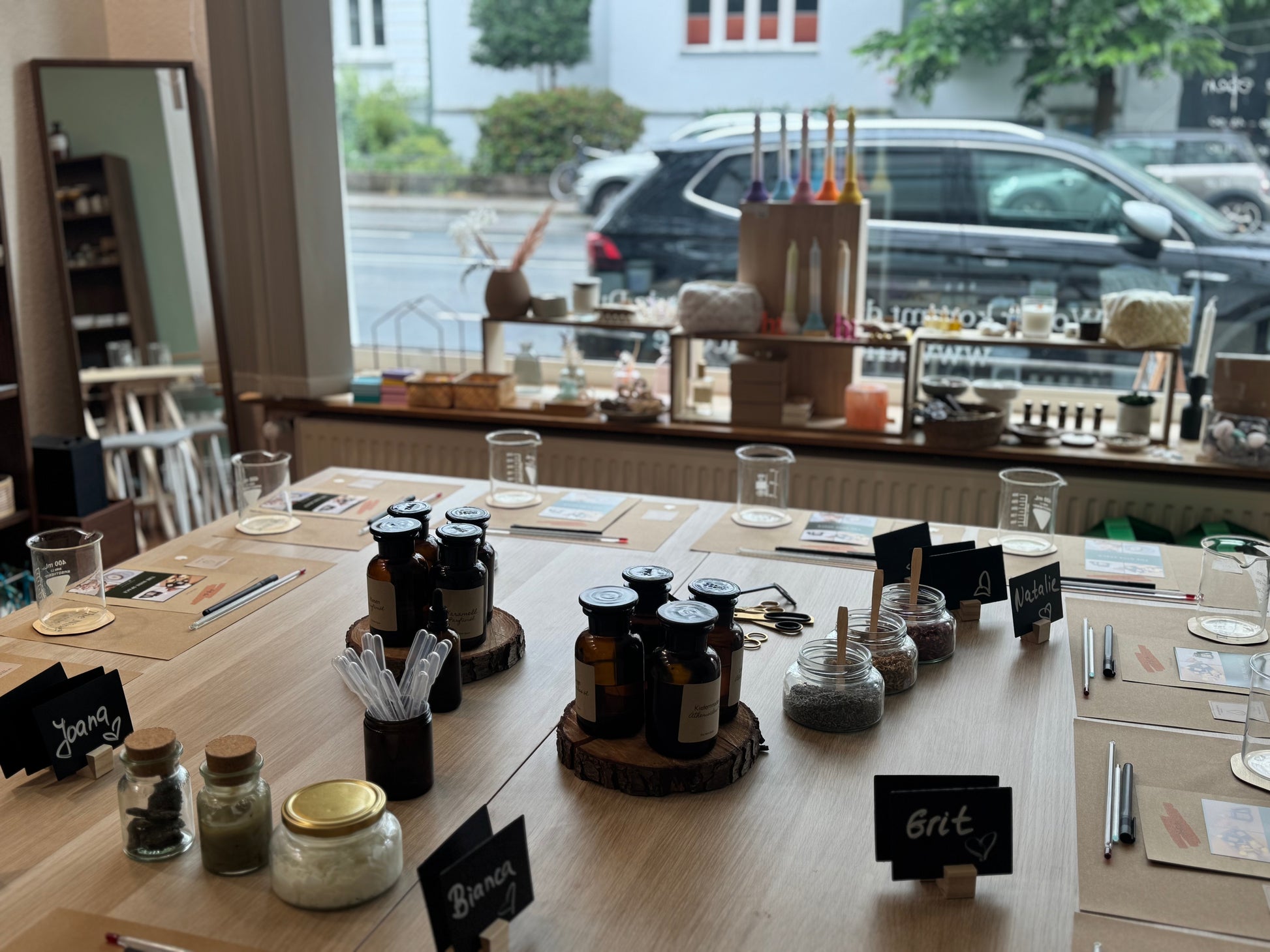 Du nimmst eine Kerze mit nach Hause – ein liebevolles Einzelstück, das nur für dich gemacht ist.