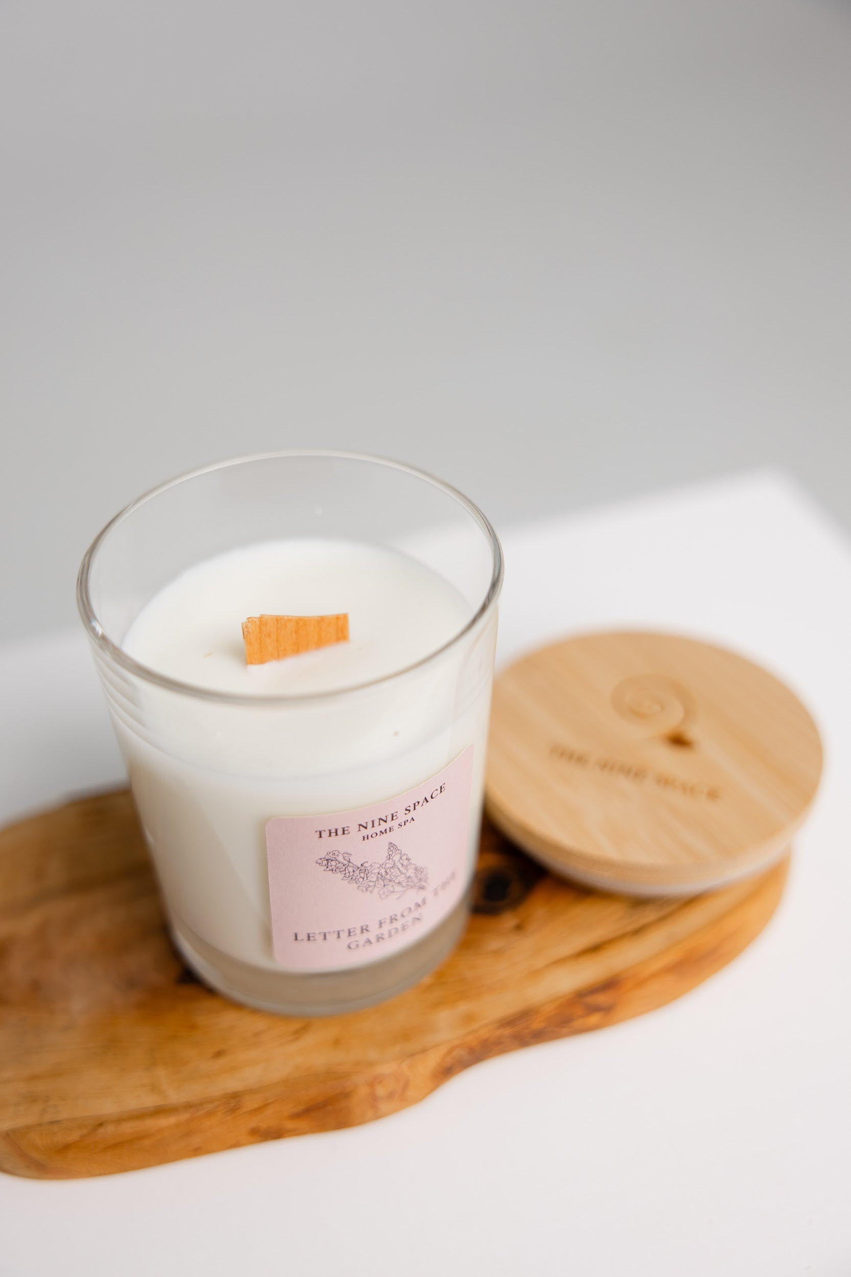 Letter from the Garden – Florale Duftkerze im Klarglas mit Holzdocht & Holzdeckel
